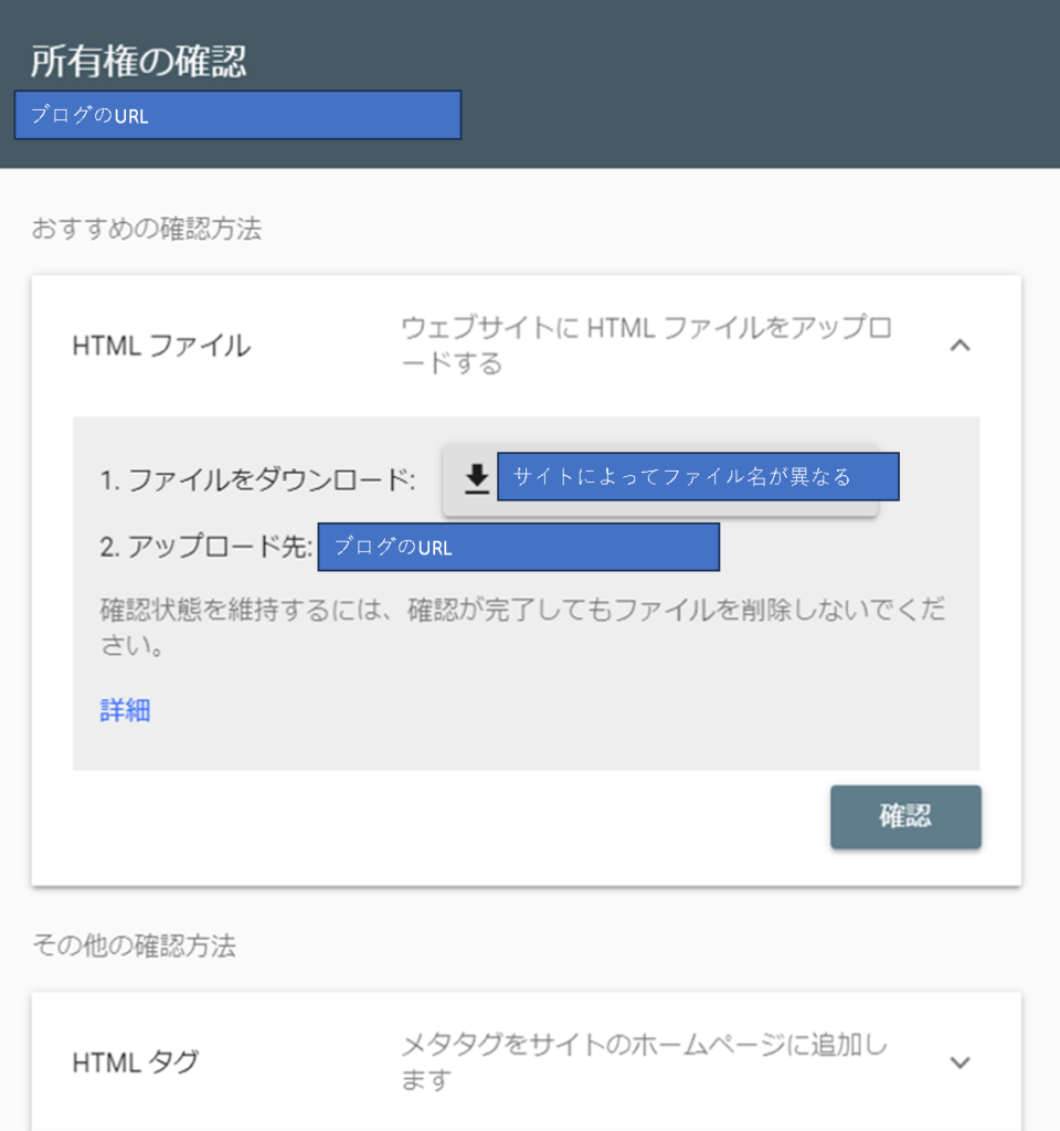 ⑤ GoogleSerchConsoleの確認ボタンを押して、「所有権を証明しました」と出ることを確認する