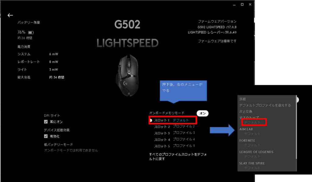 そこで、オンボードメモリ搭載のマウスであれば、マウス内のメモリに設定を保存できるため、余計なアプリは不要になります。
