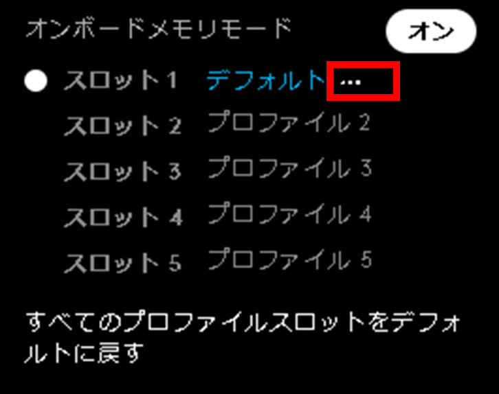 設定後、左上の戻るボタンから以下画像の部分に戻って、オンボードメモリモードをオンにしましょう。