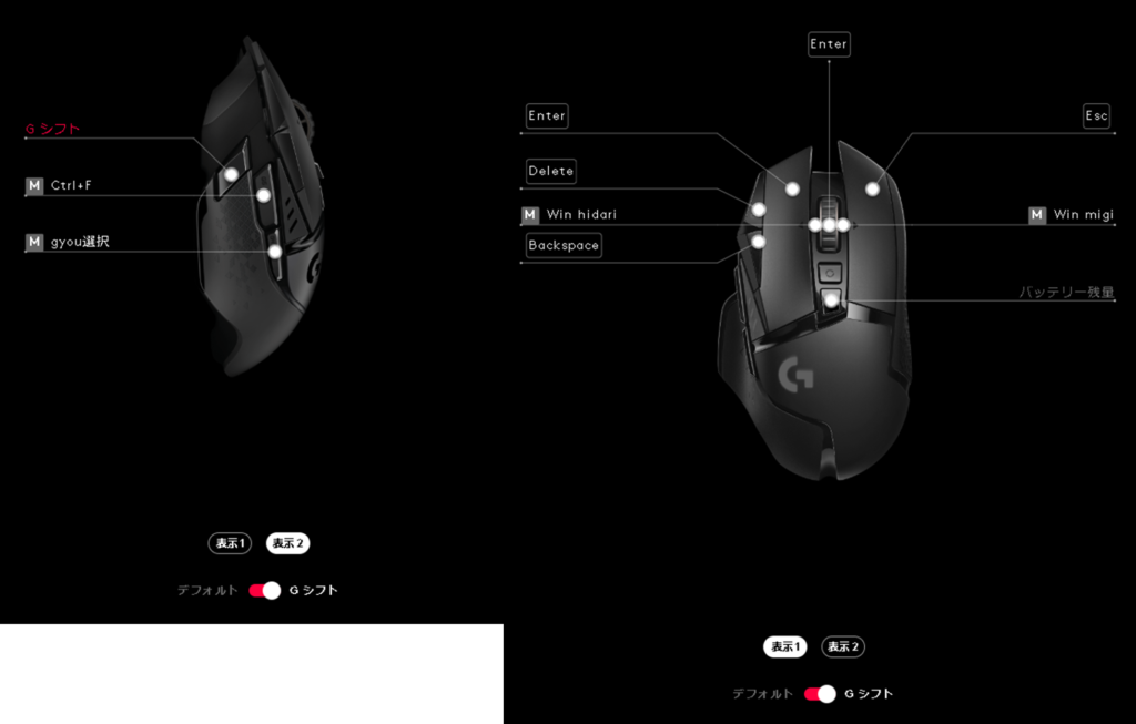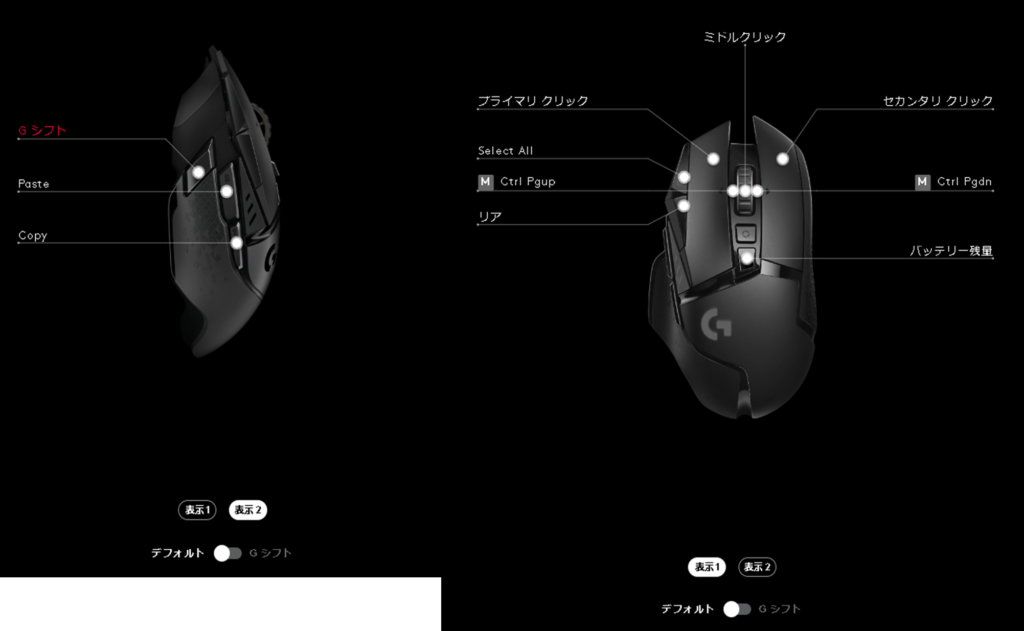 前提としてボタンを割り当てる際は、①通常のマウスモードと②Gシフトモードという2種類のモードに割り当てることができます。