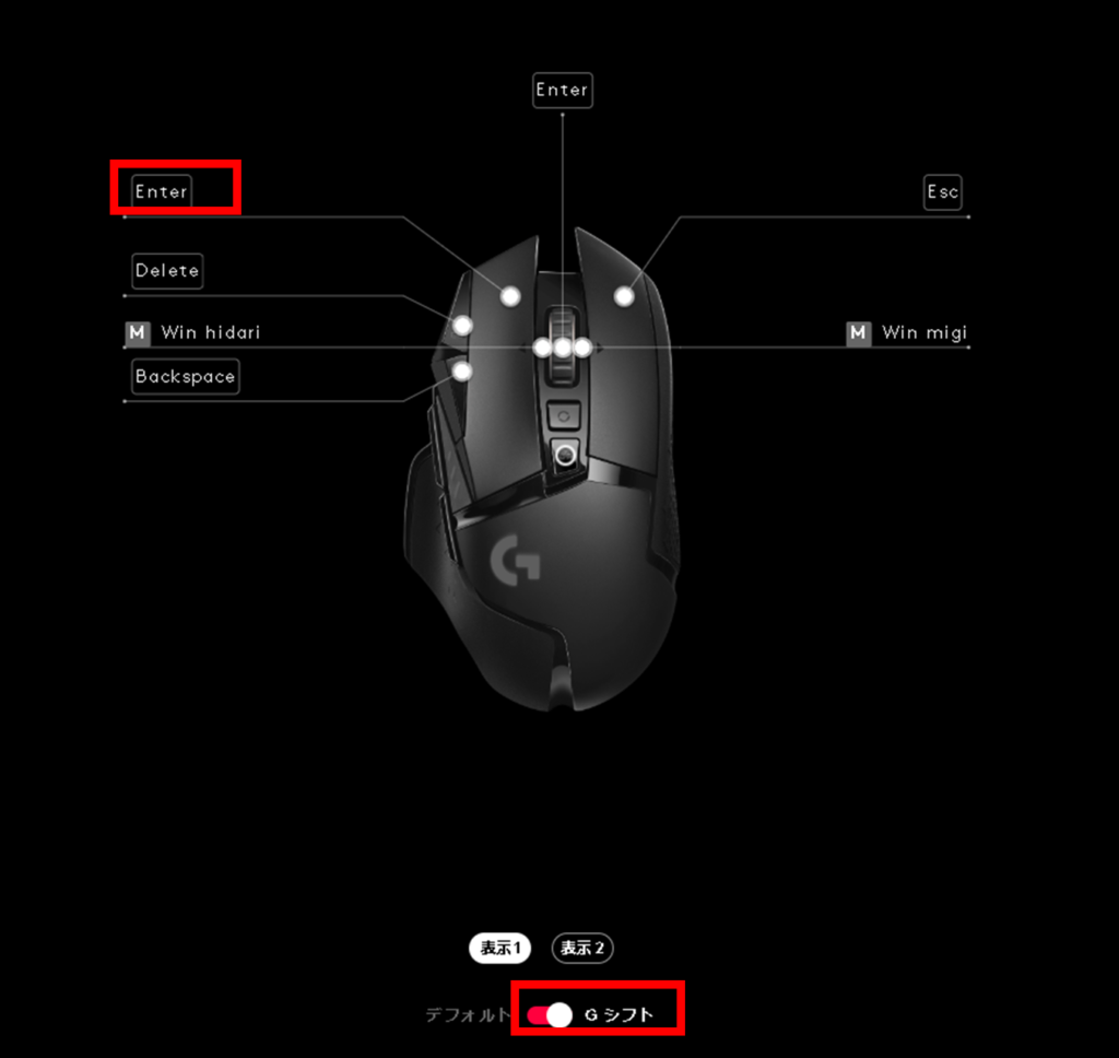 例えば「Gシフトモードの左クリックにEnterを割り当てている場合」。