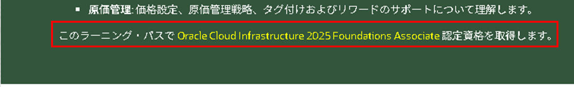 ※「このラーニング・パスで Oracle Cloud Infrastructure 2025 Foundations Associate 認定資格を取得します。」とあるのでこれを完了すれば取れる想定